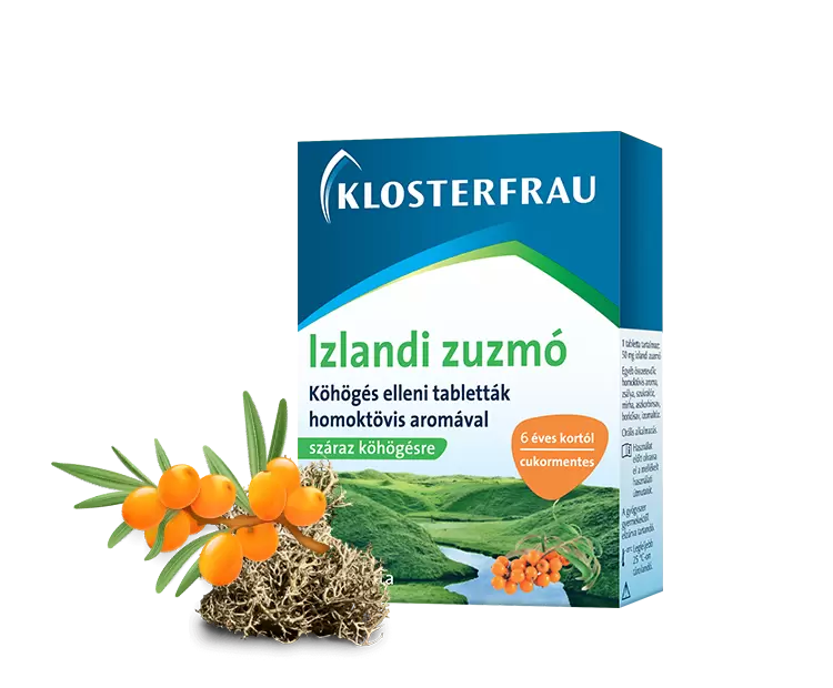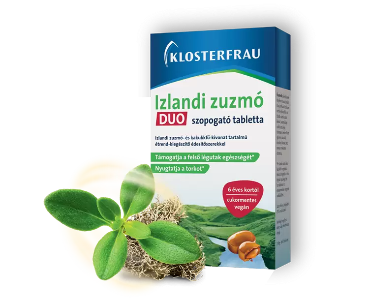 A Klosterfrau Izlandi zuzmó termékcsalád természetes módon segít, amikor torkod kiszáradt, kapar, vagy köhögésre ingerel. Az izlandi zuzmó gyengéd védőréteget képez a torok nyálkahártyáján, így enyhíti az irritációt és segíthet a száraz köhögés csillapításában. A készítmények növényi összetevőket tartalmaznak, és gyermekeknek, valamint felnőtteknek egyaránt megtalálhatók a megfelelő változatok. Kellemes ízek, természetes támogatás a torok számára bármely életkorban!
